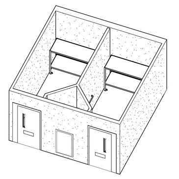 Jail in a Box (TM) is made up of two key parts—“boxes”, so to speak. The first “box” is a modular cell. The second “box”, the layout, allows the first "box”, the cell, to be useful where staff safety and cost are a concern.